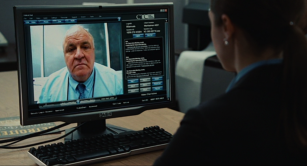 Steve Eastin dans le rôle du premier viré par écran interposé, un aperçu terrifiant du futur... pas si sûr quand on pense qu'en France des ouvriers ont appris leur licenciement par SMS...